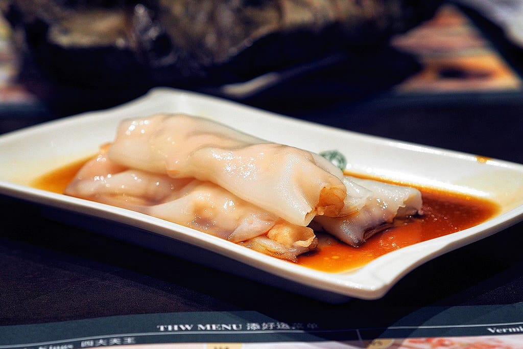 - Rice noodle rolls: Slippery rice noodle filled with shrimp or pork drizzle with sweet soy sauce